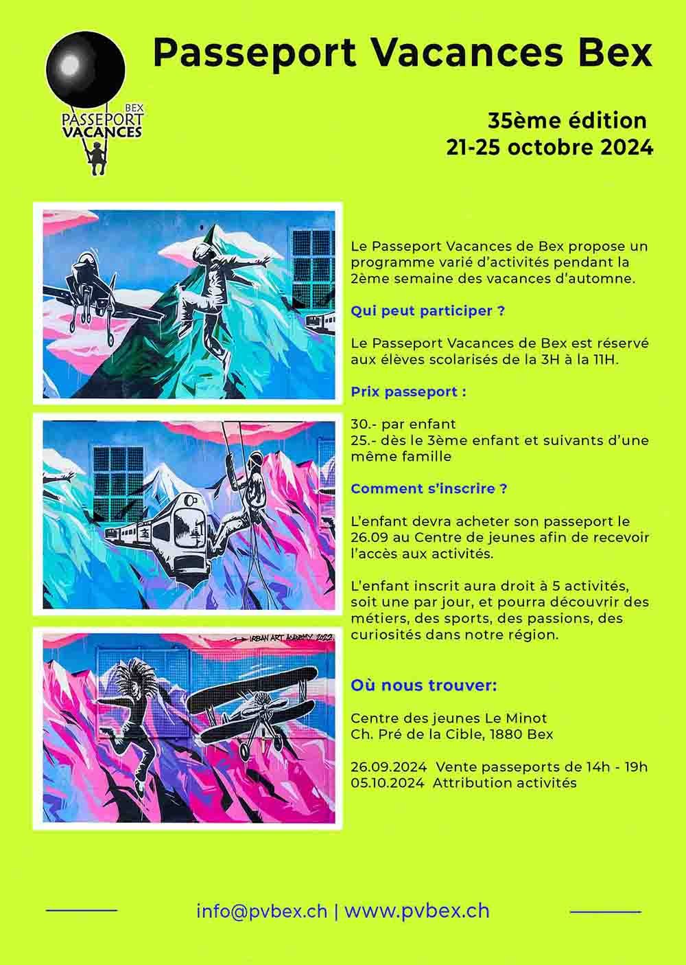 Le Passeport Vacances de Bex est réservé aux élèves scolarisés de la 3H à la 11H.